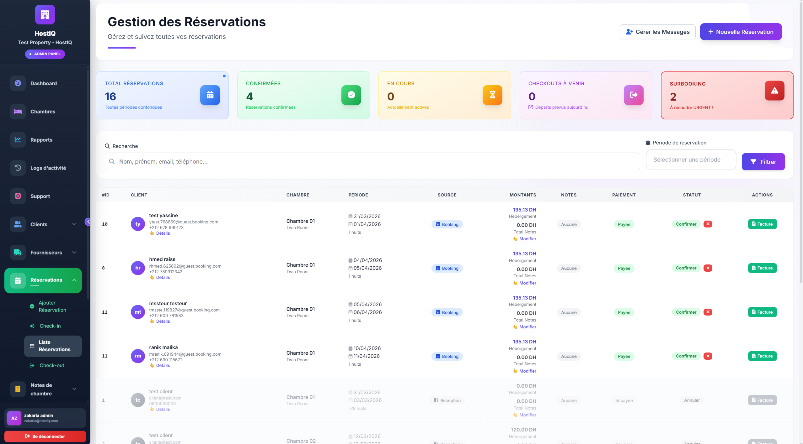 HostIQ centralise les opérations, les réservations et le suivi client dans un seul espace.